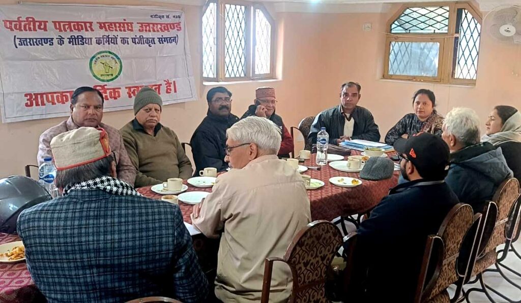देहरादून। पर्वतीय पत्रकार महासंघ की जनपद देहरादून जिला कार्यकारिणी की औपचारिक घोषणा राजधानी देहरादून में आयोजित एक महत्वपूर्ण बैठक के दौरान की गई। बैठक में संगठनात्मक विस्तार, पत्रकार हितों की सुरक्षा और आगामी कार्यक्रमों को लेकर विस्तार से चर्चा की गई। बैठक की अध्यक्षता चुनाव अधिकारी बलेश बावनिया ने की, जबकि संचालन की जिम्मेदारी अरुण कुमार मोगा द्वारा निभाई गई।